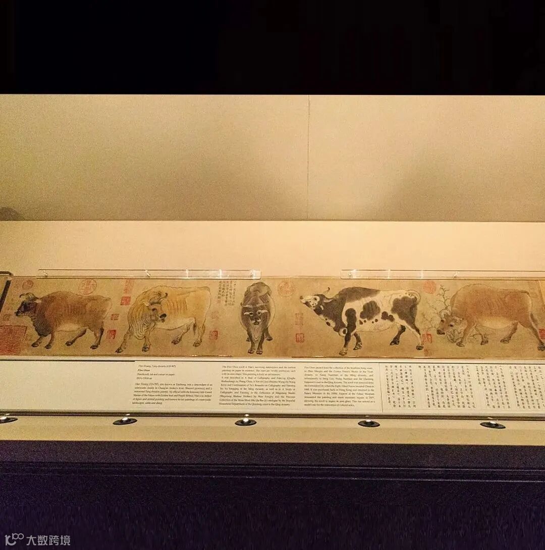 《五牛图》是唐朝韩滉创作的黄麻纸本设色画,又名《唐韩滉五牛图》,该作品现藏于北京故宫博物院。《五牛图》中的五头牛从右至左一字排开,各具状貌,姿态互异。一俯首吃草荆棵蹭痒,一翘首前仰缓步前行,一纵峙而鸣,一回首舐舌,一络首而立。整幅画面除最后右侧有一小树外,没有其他的背景,因此每头牛可独立成章。《五牛图》是中国十大传世名画,少数几件唐代传世纸绢画作品真迹之一,也是现存最古的纸本中国画。