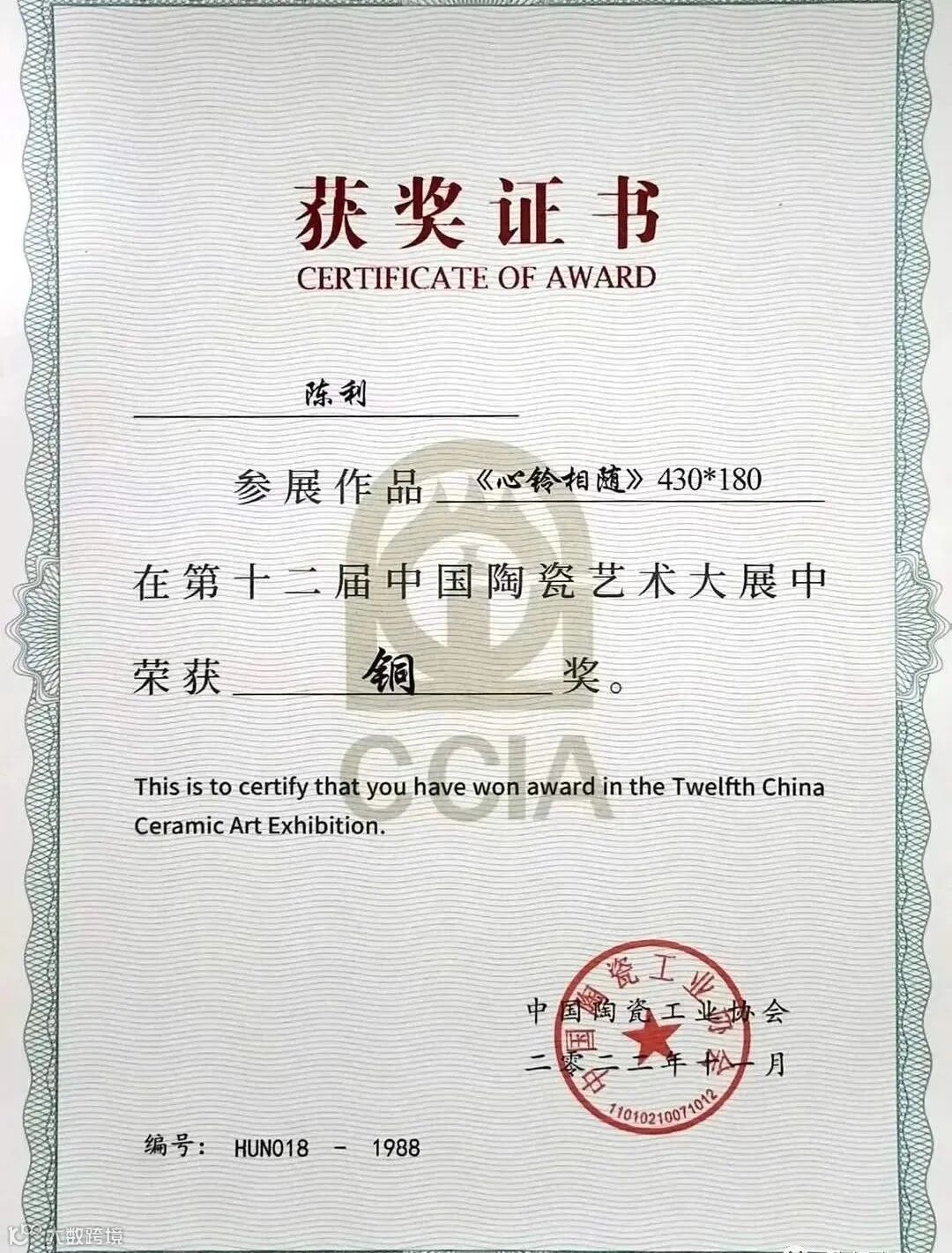 第十二届中国陶瓷艺术大展在景德镇国际会展中心隆重开幕,我市陈扬龙窑两件作品得奖。其中株洲市级非遗代表性传承人申彬作品《洛阳春晓》喜获金奖;湖南省级非遗代表性传承人陈利作品《心玲相随》喜获铜奖。