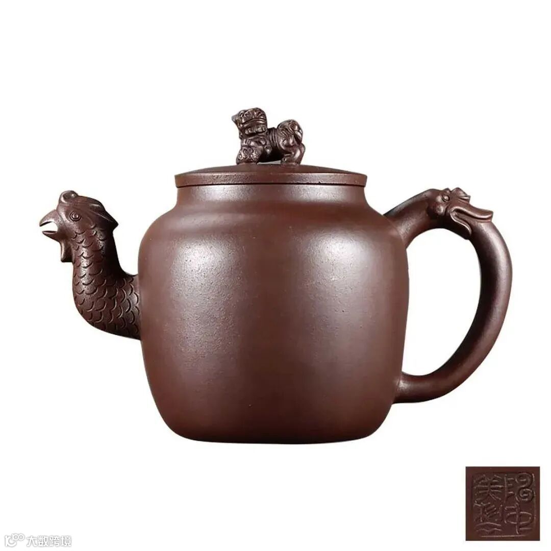 明 龙凤呈祥狮球钮紫砂壶 陈仲美款