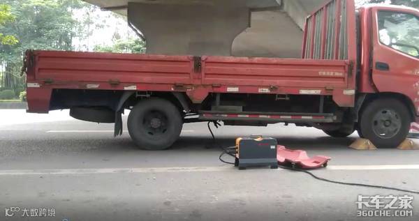 之前两辆没有合格的轻卡之一,边上就是尾气检测设备