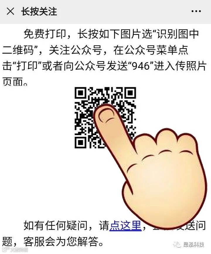 第二步:关注并发送“946”或选择“照片打印”菜单。