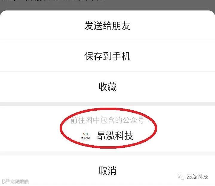 1、按住手机上出现的公众号二维码,直到出现选择框。