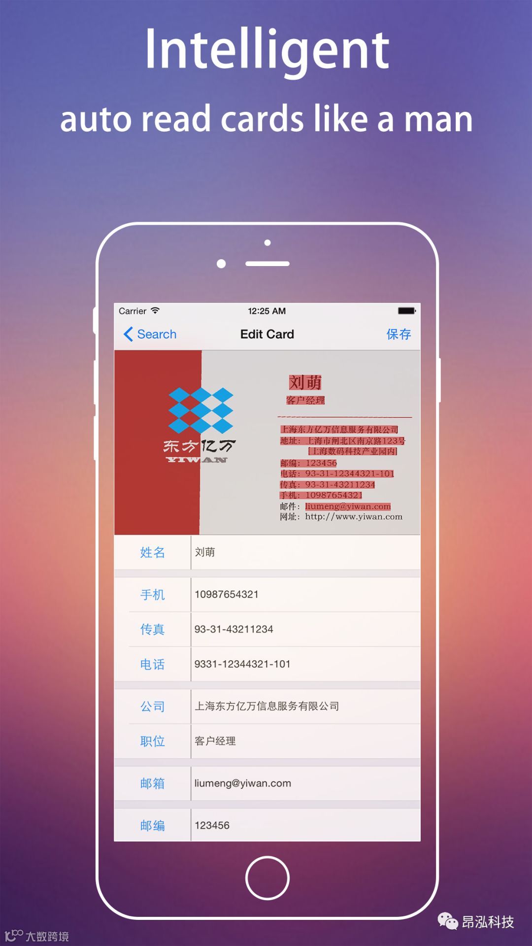 昂泓开发的图像识别APP,昂泓的图像识别技术用途十分广泛,除了名片识别,还有文件扫描、复印, 银行卡识别,身份证识别,电表、水表读数识别,生产品的正品和次品比对,医学中的细胞数据统计等等。