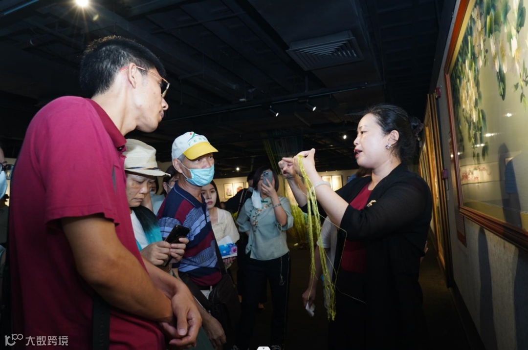 成新湘大师为观众讲解并展示“劈丝”技艺