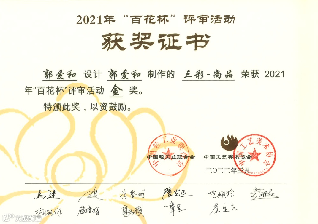获世界手工艺理事会中国工艺美术【百花杯】金奖