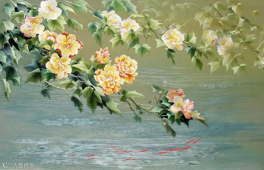 在众多的湘绣绣品当中,我们常常能看见湘绣作品当中以花卉湘绣最为丰富了。其实在刺绣当中,花卉一直以来就是最为人们喜爱的一种题材了。这大概与人类渴望自然有关,所以对于大自然当中美丽的花卉自然就有一种爱屋及乌的心里,所以刺绣多以花卉为主。而在这幅湘绣花卉绣品当中,绣品颜色的搭配非常的亮眼,绣花花生香,看着这幅绣品仿佛的确是闻到了花卉散发的阵阵微香,让人不得不赞叹,并爱上湘绣。