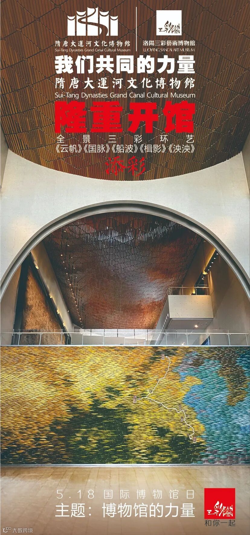 隋唐大运河文化博物馆采用国内面积最大的三彩陶瓷吊顶系统,馆内郭爱和、郭家启五大作品《云帆》《国脉》《船波》《楫影》《泱泱》展示全景三彩环艺,独居特色,值得打卡!