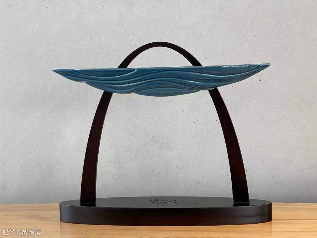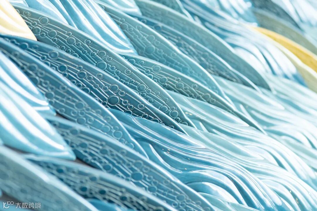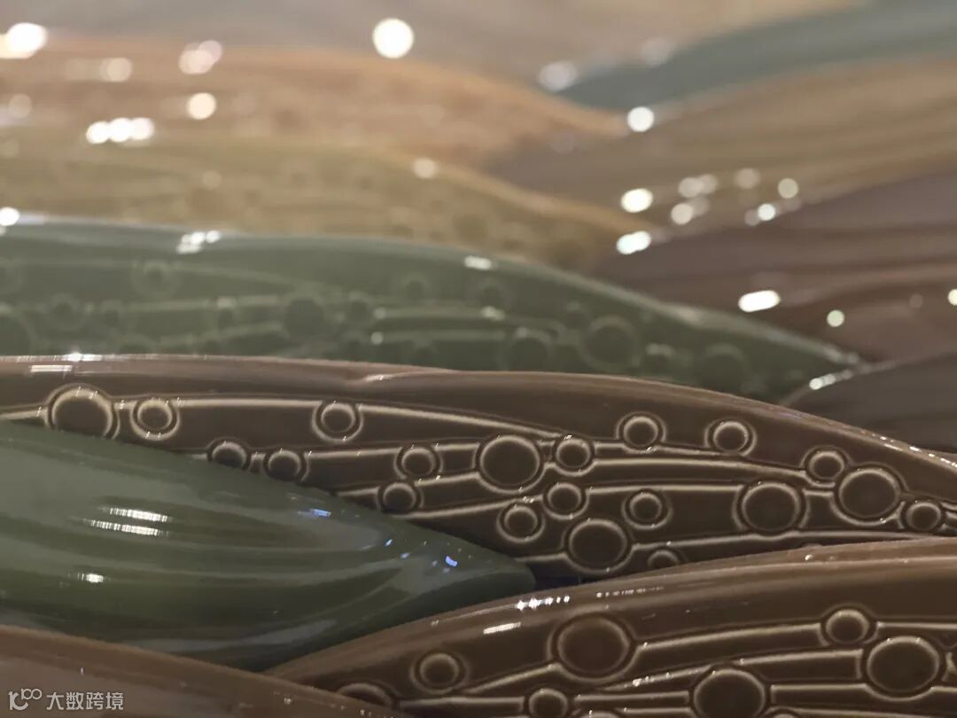 三彩环艺《船波》是洛阳隋唐大运河文化博物馆系列环艺作品之一,延续了由三彩“波·船”圆弧陶件上下排列组合而成的表现形式。整体画面釉彩汲取传统洛阳三彩所呈现的艳亮透流的特性,以温暖的色调描绘了一幅尘封的历史画卷。这是一本由水写成的书,用帆写成的歌,造就出晨曦日照,烟波浩渺的运河宛如一条玉带蜿蜒于华夏大地的盛景,展现了波光中的辉煌。