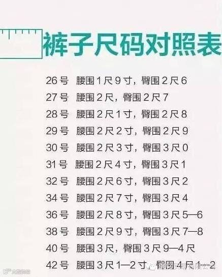 7. 裤子尺码对照表