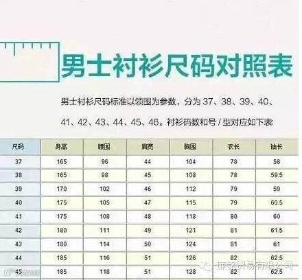8. 男士衬衫尺码对照表
