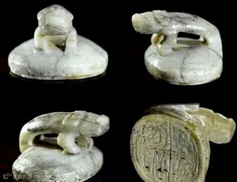 这枚印通高2厘米,边长2.8厘米,也就是一个拇指的大小,现藏陕西历史博物馆。玺钮为高浮雕的螭虎形象。最为重要是这枚印以和田羊脂白玉雕成,玉色为纯净的白色。