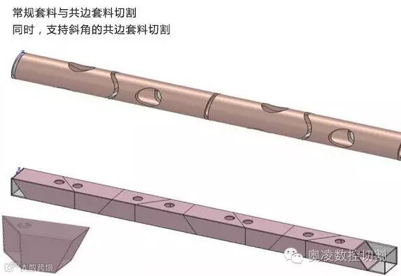 将两种或以上的零件共边成一个组合,大批量的规则图形尽量共边,共边切割可以大大缩短切割时间,还能节省原材料。