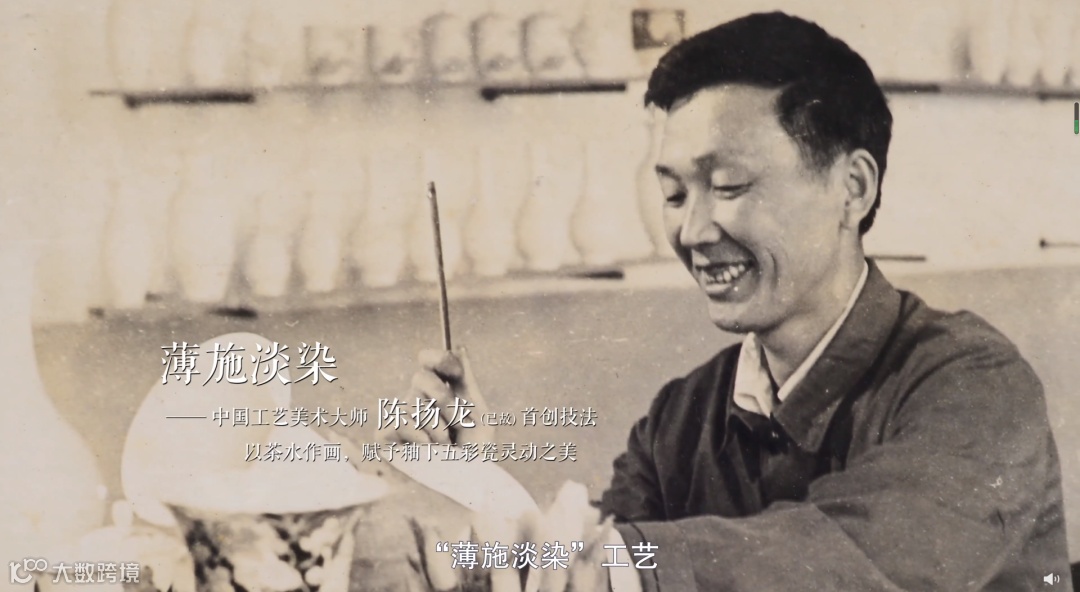 陈扬龙先生经过四十余年的研究和试验,于90年代概括出了“薄施淡染”醴陵瓷这一独特的技艺特点,使醴陵瓷艺成为我国陶瓷艺术的一朵奇葩。他继承传统又不拘泥传统,“薄施淡染”是在传统“单线平填”“接色”“罩色”“点水”等技法上创造性的发展,然而其层次更为丰富,色彩更为水润,厚重而又通透。对传统绘画“三矾九染”的技法进行了分水技术的彻底工艺化。