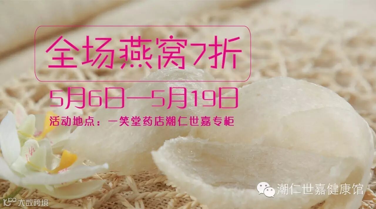 关注【潮仁世嘉健康馆】微信公众号"crsj-centre",发送“老妈,我爱您”,即可参与我们的微信有奖活动。价值千元燕窝等你拿!