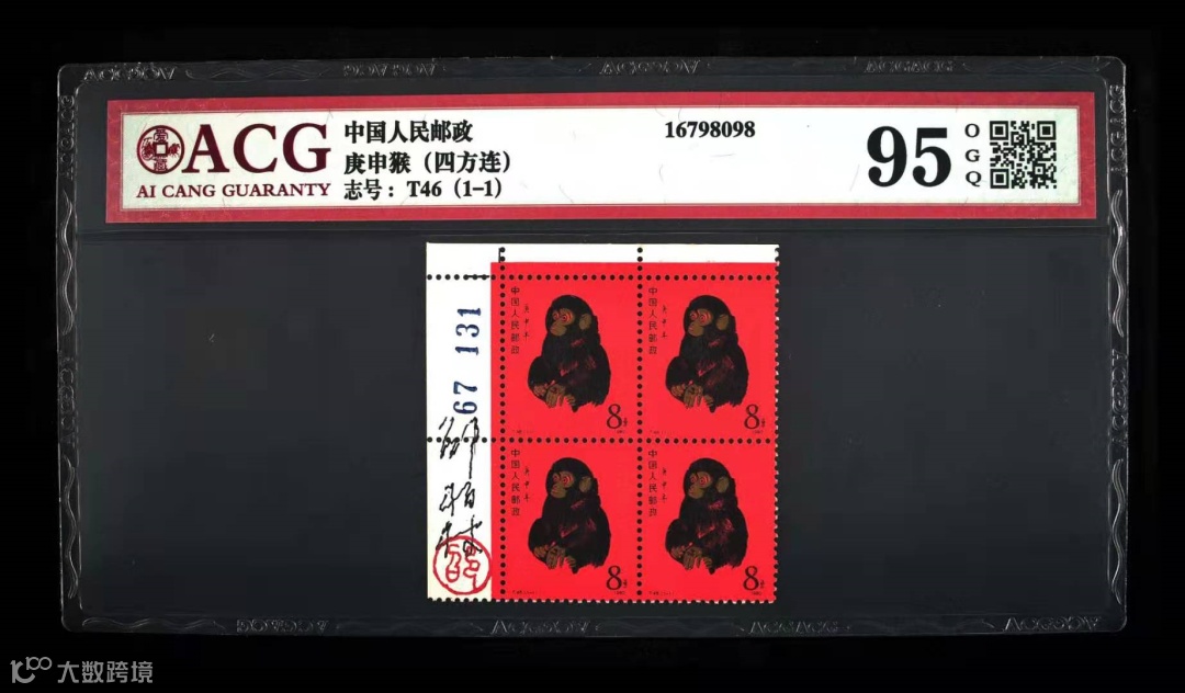 ACG95分 T46猴四方连 罕见签名版