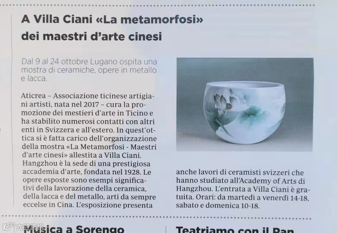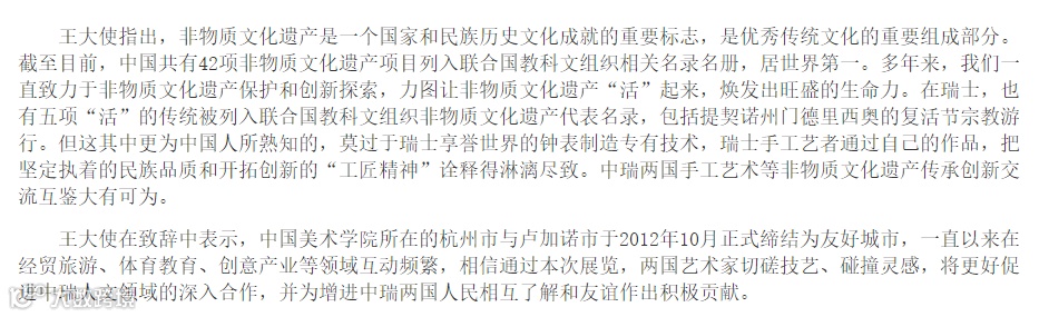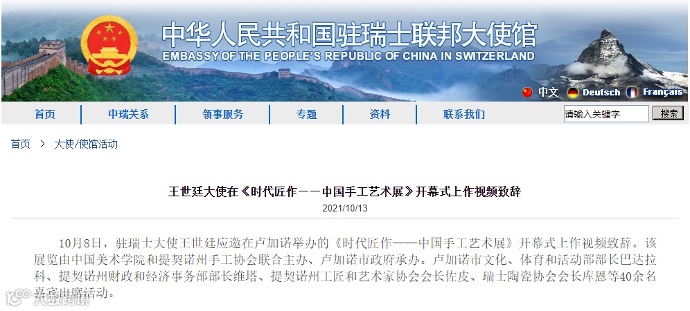 10月9日,“时代匠作——中国手工艺术展”在瑞士开幕。据悉,此次展览由中国美术学院组织,旨在聚集中国民间与院校的代表性手工艺作家,通过对具体鲜活案例的梳理与展示,探寻现阶段手工艺与社会生活的关系,展现当代手工艺的艺术风貌,传播中国手工艺的格物思想。
