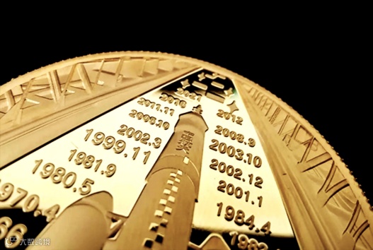 正面主体材质为黄铜镀黄金,采用了大落差的高浮雕工艺。