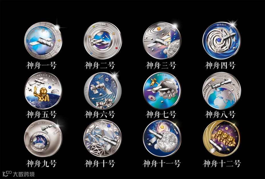 今天还带来了同样由中国航天文创出品的“神舟系列大全套纪念章”,共12枚,直径38毫米,其中神一到神十一为铜金属材质,神十二为双金属材质,总发行量5000套。一套即将神舟系列全部集齐!