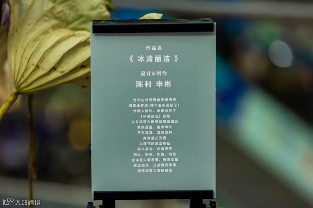 本次展览最为主要的是陈利和申彬联手创作的献礼中国共产党成立100周年纪念瓷《冰清丽洁》姐妹瓶首次亮相羊城。它以冬瓜瓶为造型,祝福祖国国运繁荣昌盛,福寿绵长,万民福泽,富贵吉祥。并蒂莲花的图案设计,以莲花的高洁象征和平事业、和谐世界,同心、同根、同福、同生。