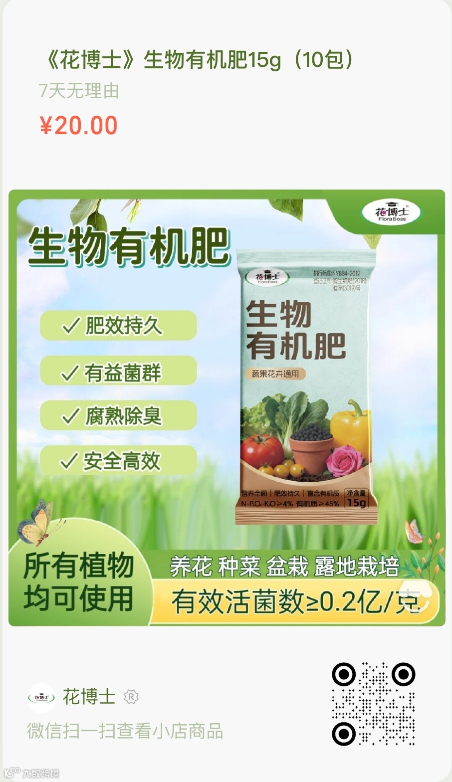 🎉现在购买《花博士》生物有机肥15g有机肥10包,赠1包10mL《花博士》家庭园艺浓缩营养液通用型。