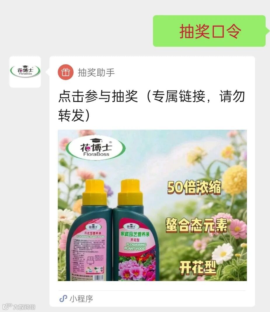 关注本公众号 + 点赞本条推文,后台发送口令“节节高升”,参与专属链接抽奖,免费领取《花博士》观叶型营养液一瓶!