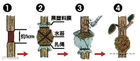 在高枝或普通压条繁殖的时候,都可以用到水苔,将水苔浸泡清水,一个小时后再拿起来沥干水分后包裹在压条繁殖的部分,也就是将皮剥开一段的部分,包裹后适当浇水湿润之后,用塑料薄膜包起来,两边捆好。接着就可以定期浇水,保持水苔湿润,一般过来3~4周之后,压条繁殖的部分就会不断长出根系,等根系长满整个水苔,就可以将整段枝条切割下来,变成新的植株。