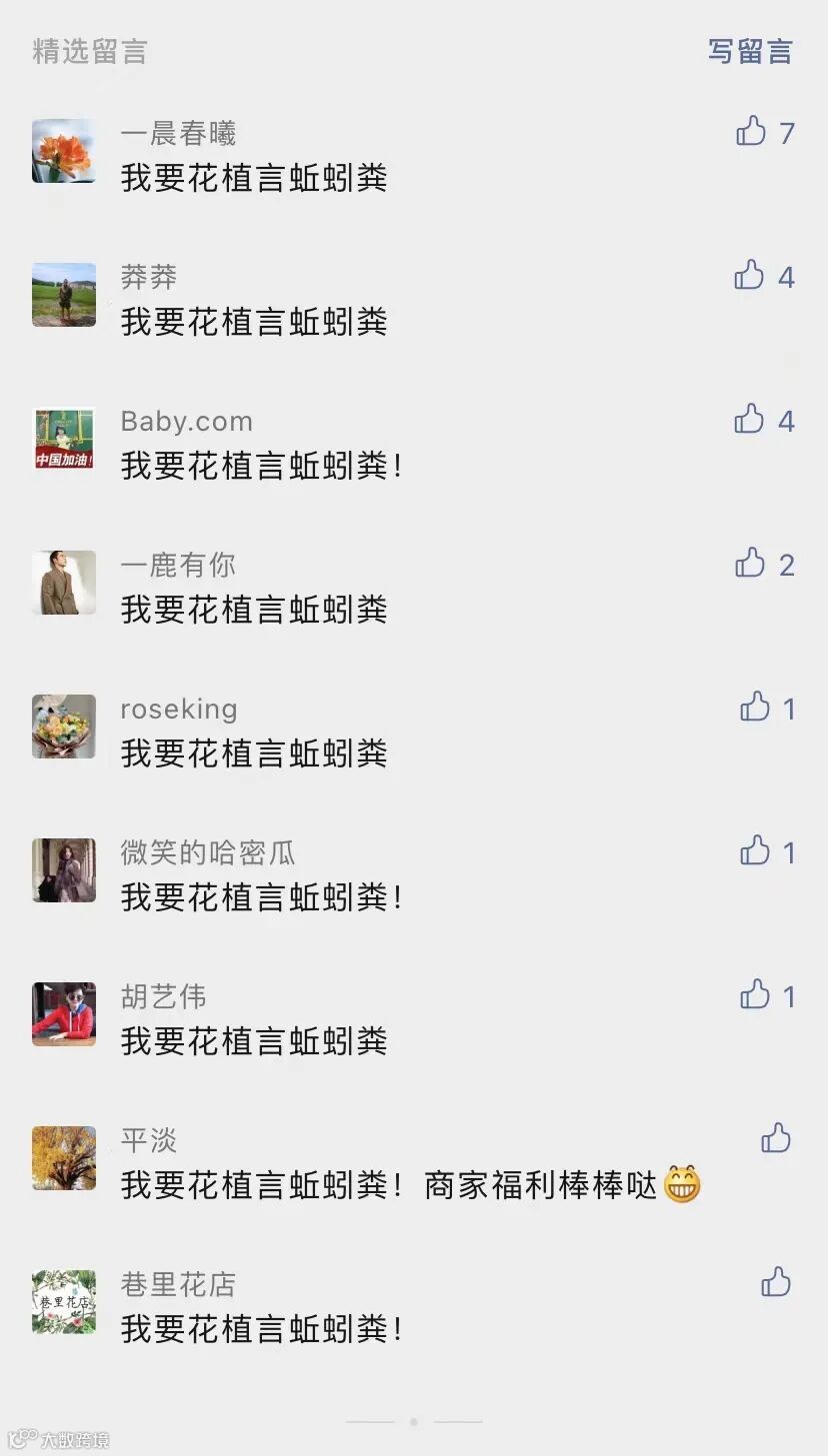 以下粉丝均可免费获得花植言1kg蚯蚓粪1包: