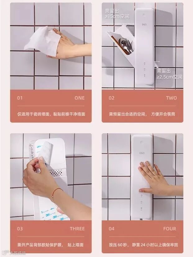 拆洗起来也非常方便,筷筒是独立的结构的,能很方便地从墙面拆下进行清洗并完成沥水。