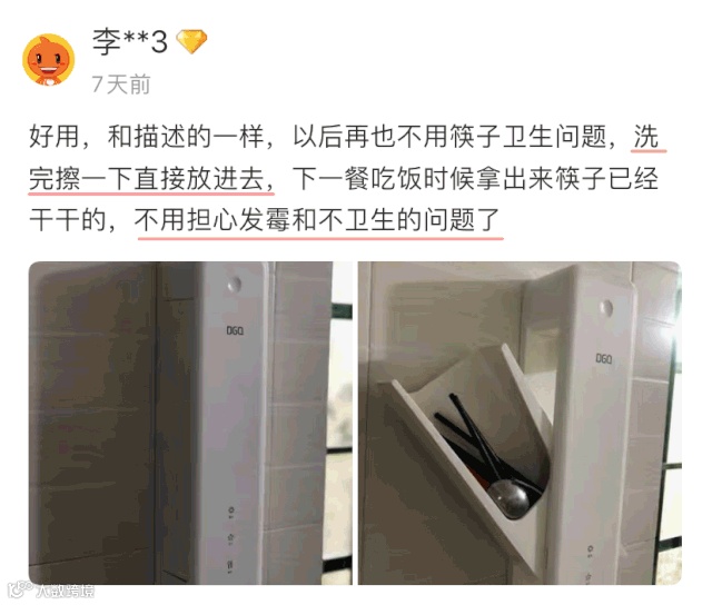 刚清洗完的筷子和餐具不用特意去沥水,直接放进去,就可以被快速烘干,从根源上破坏了细菌生长的有利环境,治标又治本!