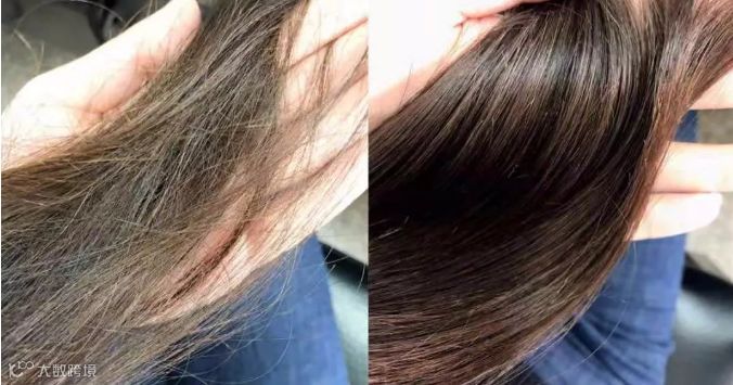干燥的头发明显变的柔顺,发丝的干燥毛躁,分叉、打结现象也彻底改善了!
