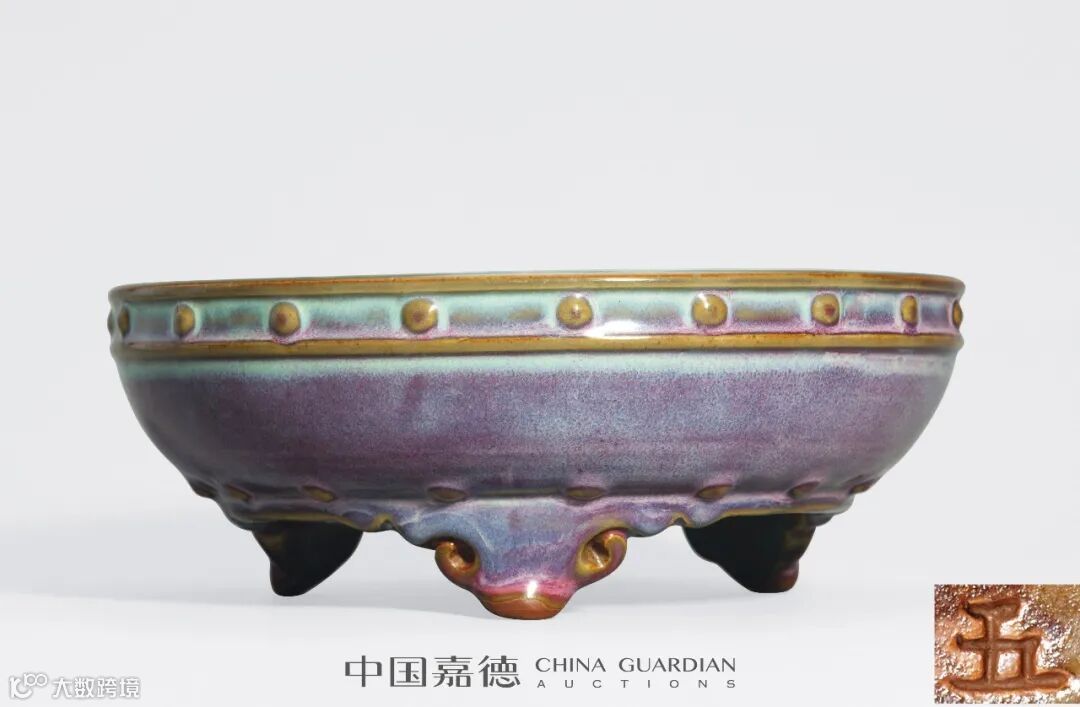 明早期 钧窑 《玫瑰紫釉鼓钉洗》