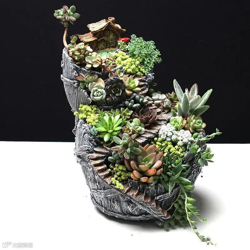 组合盆栽搭配灵活、多彩、造型多样,可以蕴含着某种寓意。