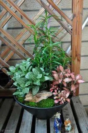 把多种观叶植物或者适合在室内种植的花草,一起种植在大中型不同材质的花器中,形成一个协调统一的景观,就是一个“室内迷你花园”。
