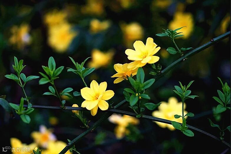 迎春花,在百花之中率先开放,花开后就迎来百花齐放的春天,因此而得名“迎春花”。花色淡黄或金黄,端庄秀丽,气质非凡,枝条细长直立或拱形下垂,适合在溪边、桥头、庭院、房屋附近种植,另外把迎春花作为盆景或盆栽种植也很受欢迎,别有一番风味。