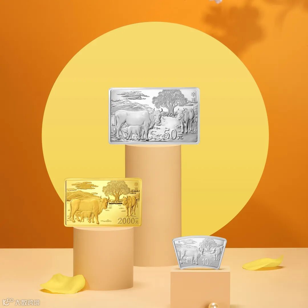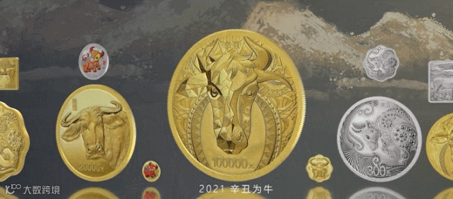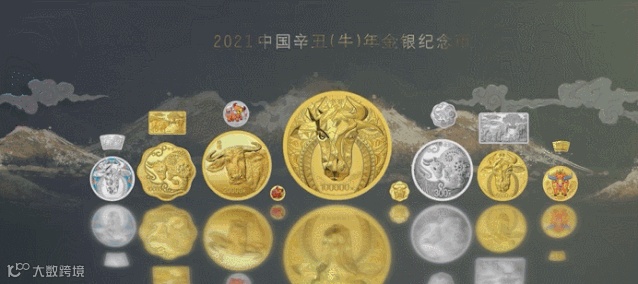 2021中国辛丑(牛)年金银纪念币一套15枚,其中金质纪念币9枚,银质纪念币6枚,均为中华人民共和国法定货币。纪念币包括圆形、梅花形、长方形和扇形4种形制,正面图案均为中华人民共和国国徽,并刊国名、年号。