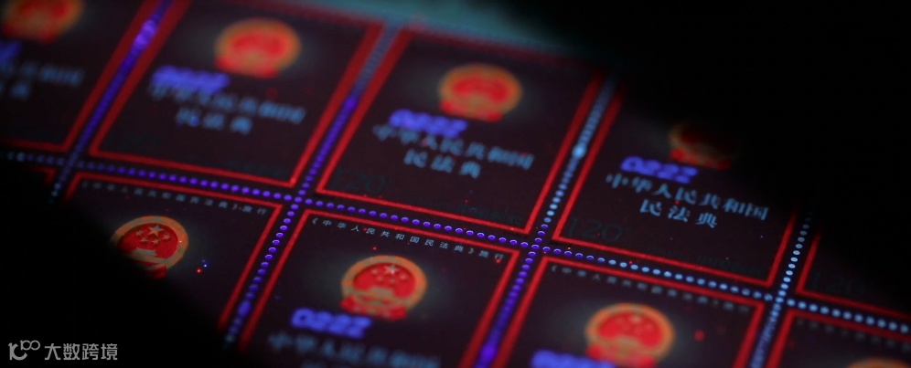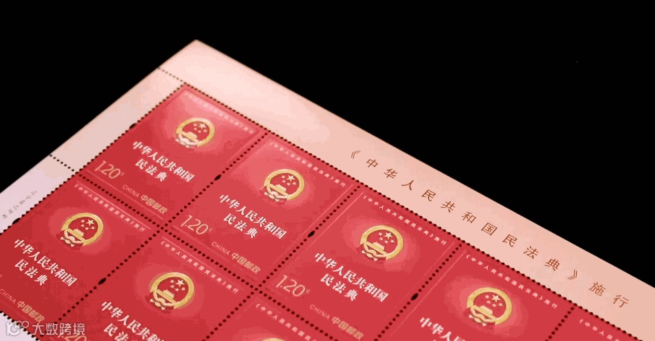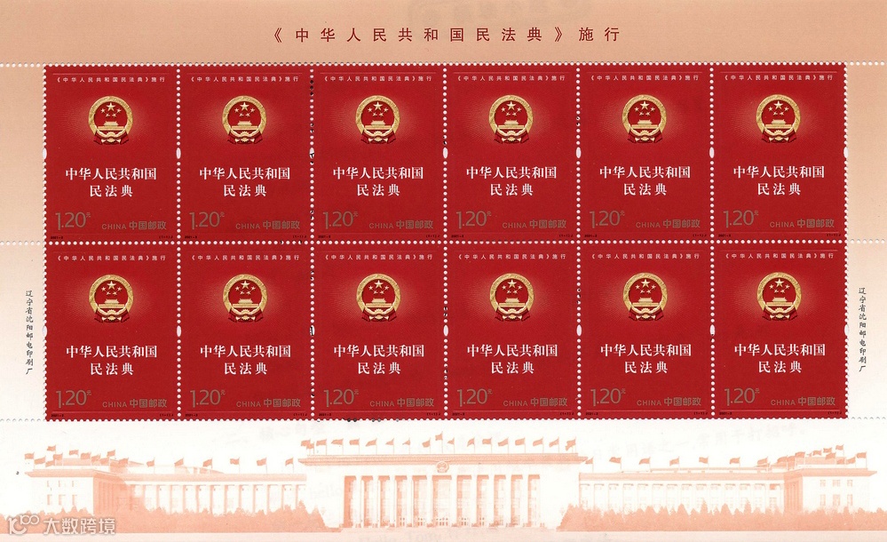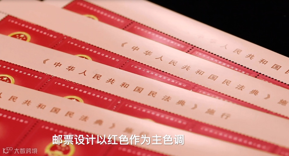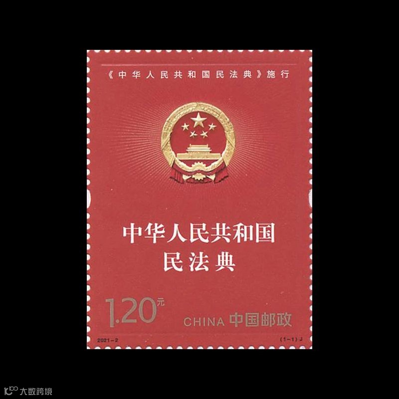 该套邮票采用平面设计表现方式,设计主题明确、表现重点突出。画面以红色为主色调,庄严的国徽闪耀金色的光芒,图案四周运用直线条表现出厚重典籍的视觉效果,强调了《中华人民共和国民法典》的严肃性、权威性,视觉效果大气、庄重。该套邮票由邢文伟设计,辽宁省沈阳邮电印刷厂采用胶印(局部压凸工艺)印制。