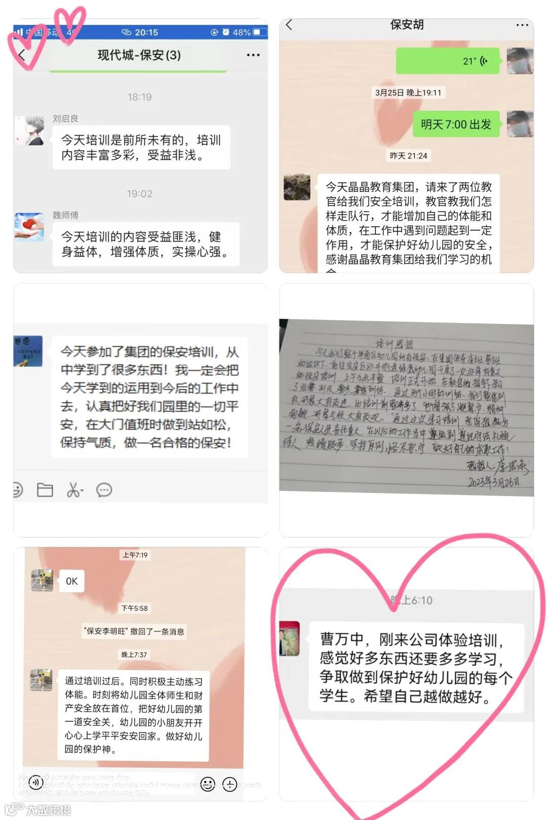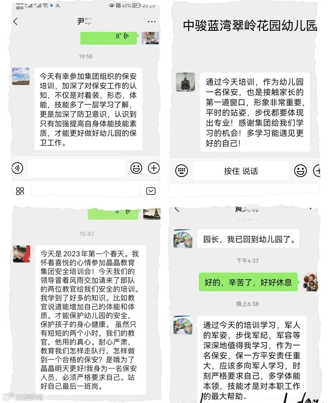 为了提升园所保安员的综合素质、精神面貌、工作执行力,增强向心力。2023年3月26日,晶晶国际教育集团后勤保障部组织各园保安和后勤管理人员开展了保安形象提升培训活动。