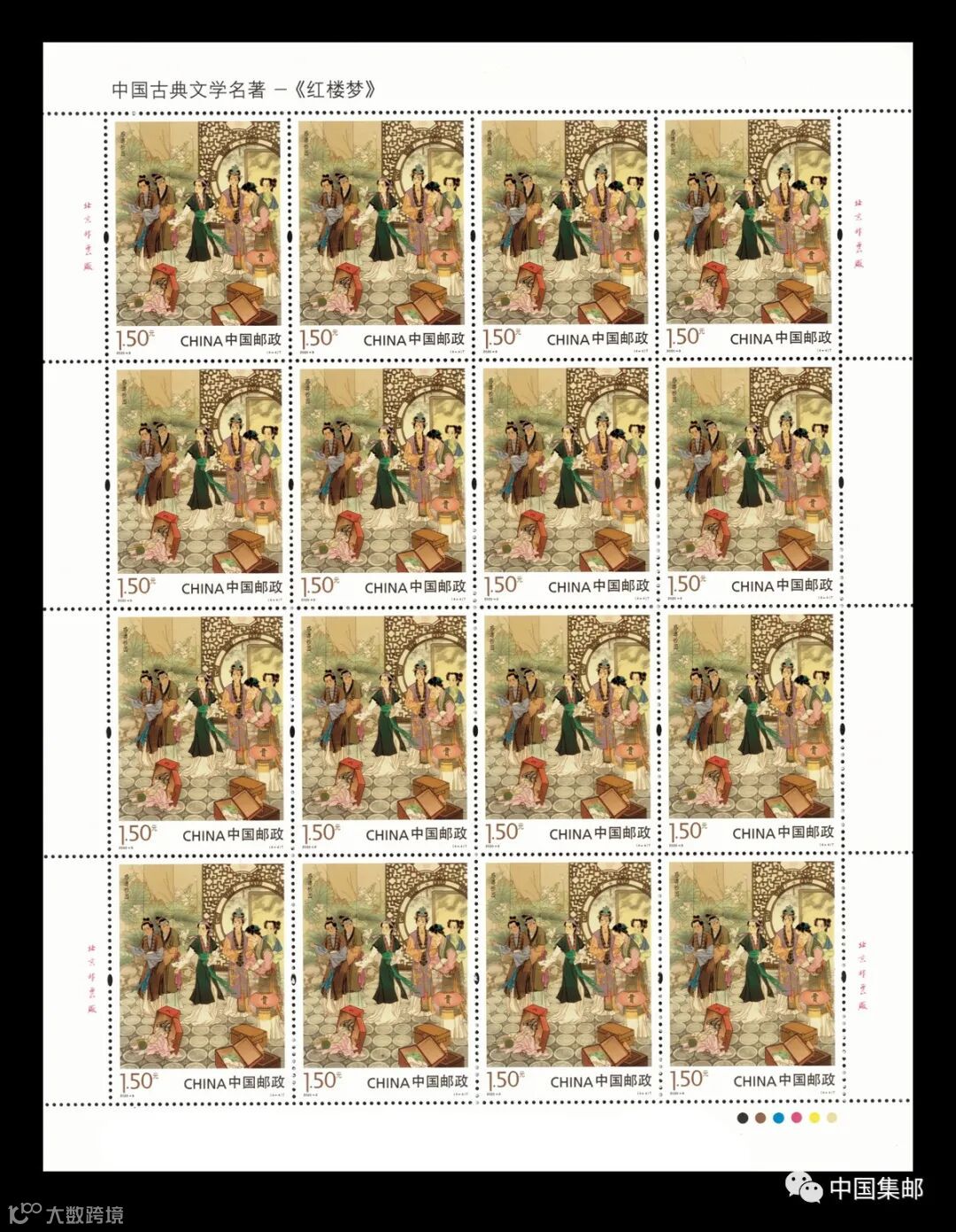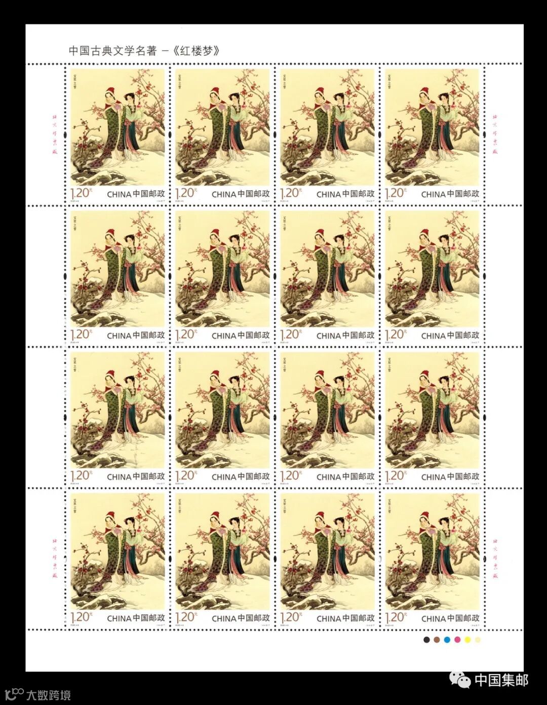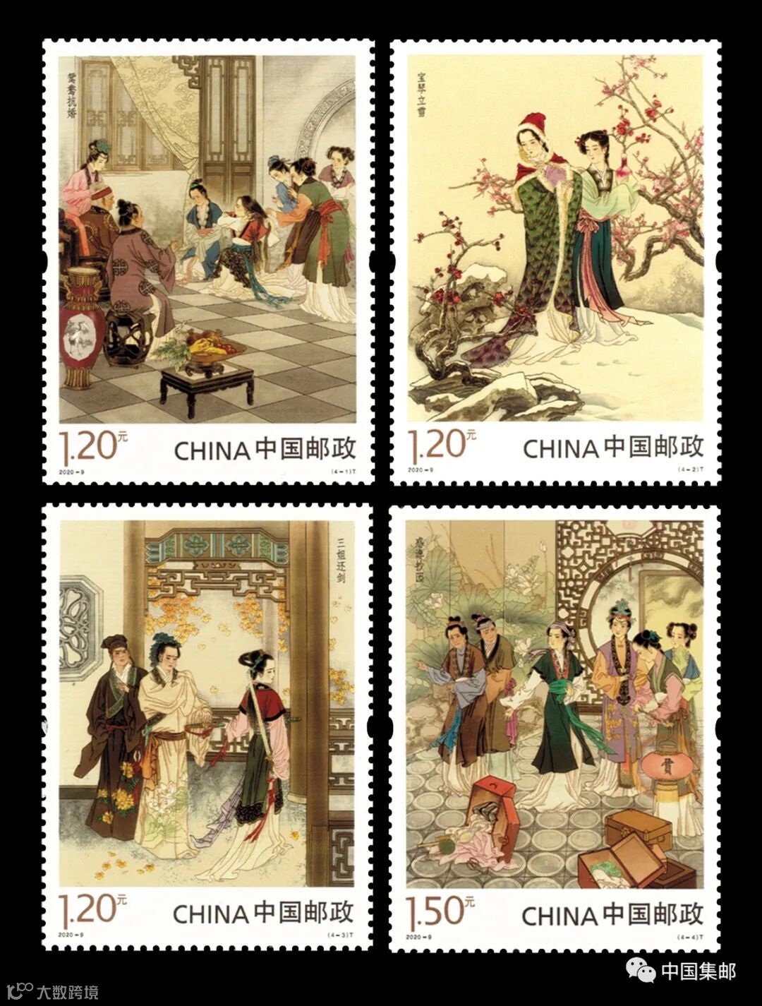 中国邮政定于2020年5月17日发行《中国古典文学名著——〈红楼梦〉(四)》特种邮票1套4枚,小型张1枚。