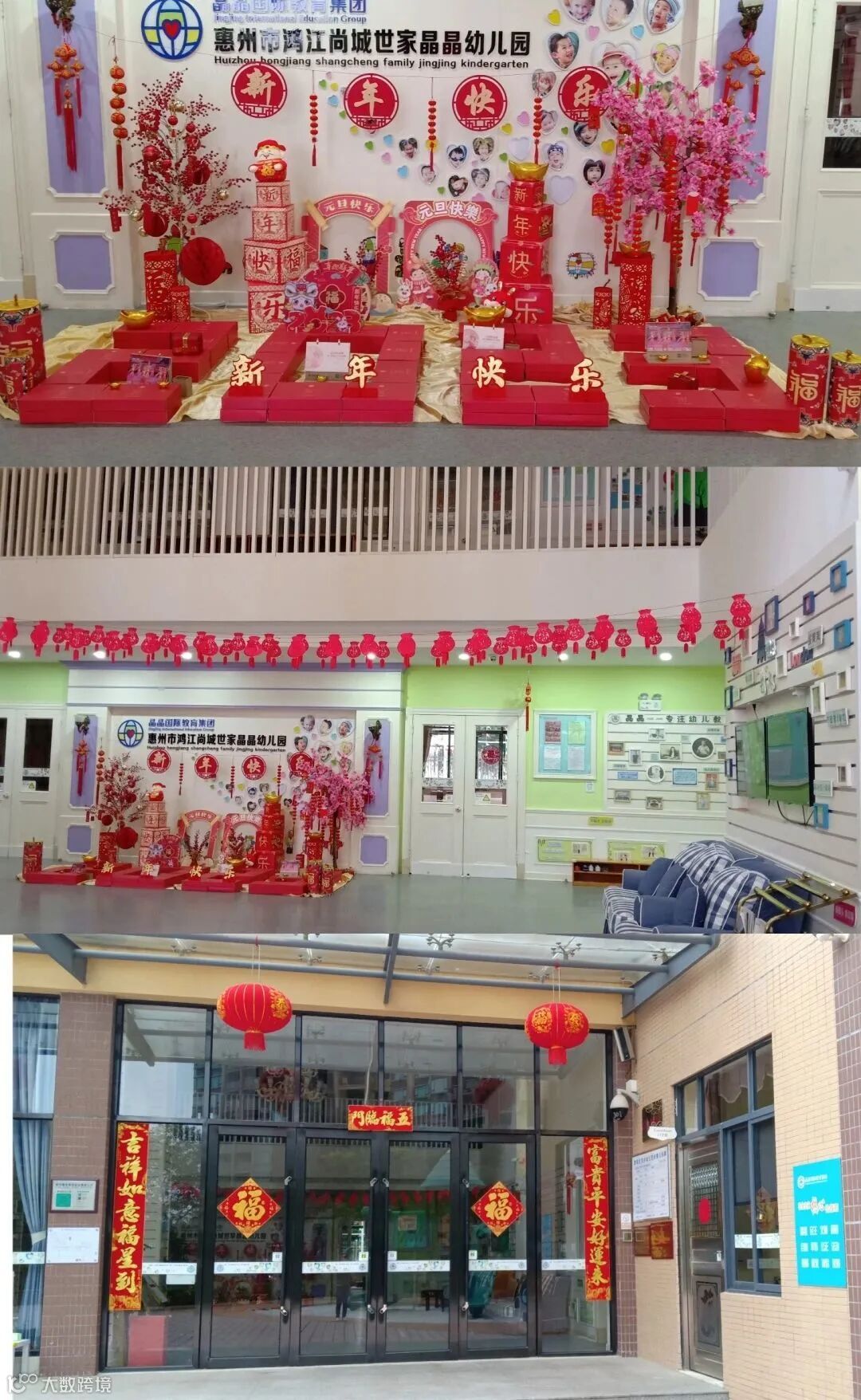 晶晶集团各幼儿园精心布置,通过最具春节气氛的装扮,寄望新的一年,晶晶大小朋友都能健康、平安、幸福、快乐!