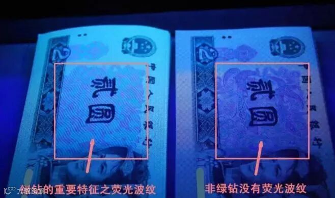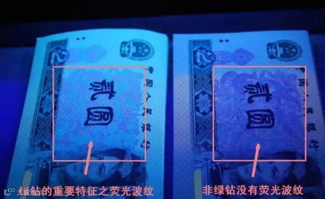 802绿钻荧光最突出的就是正面的波浪荧光,在荧光下如果出现了波纹形状的荧光,基本上就可以确定这是802绿钻了。