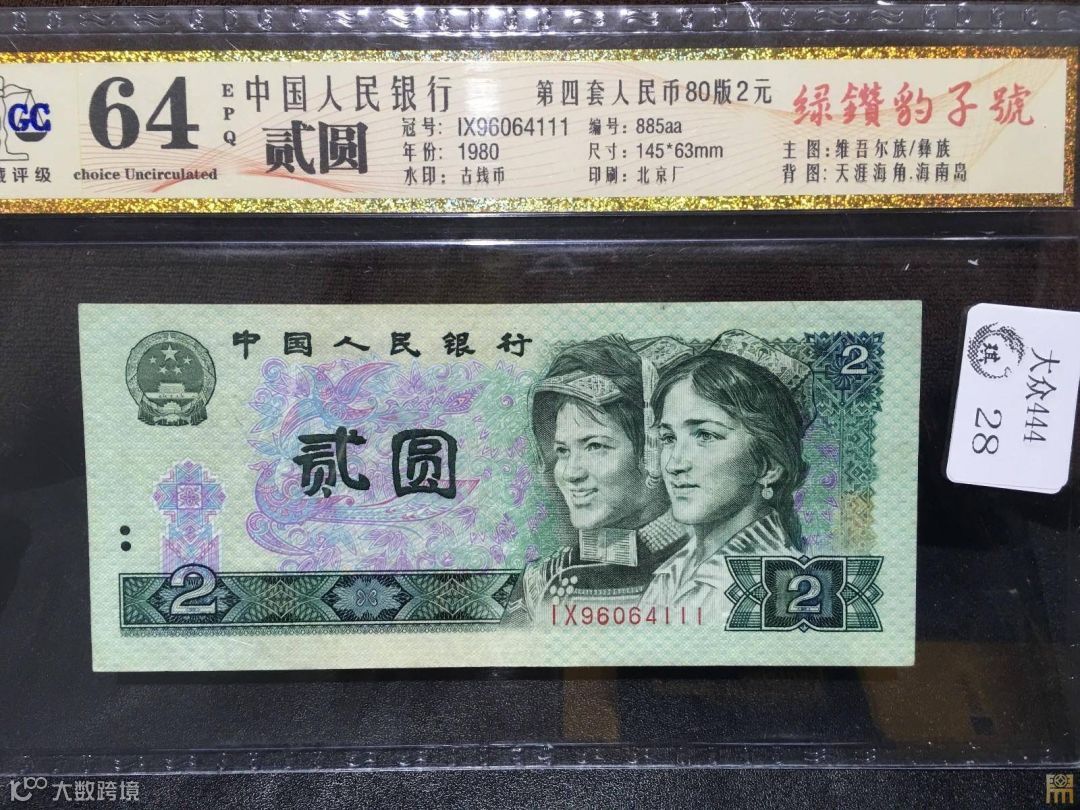 802绿钻特指第四版人民币80年2元的部分冠号币。