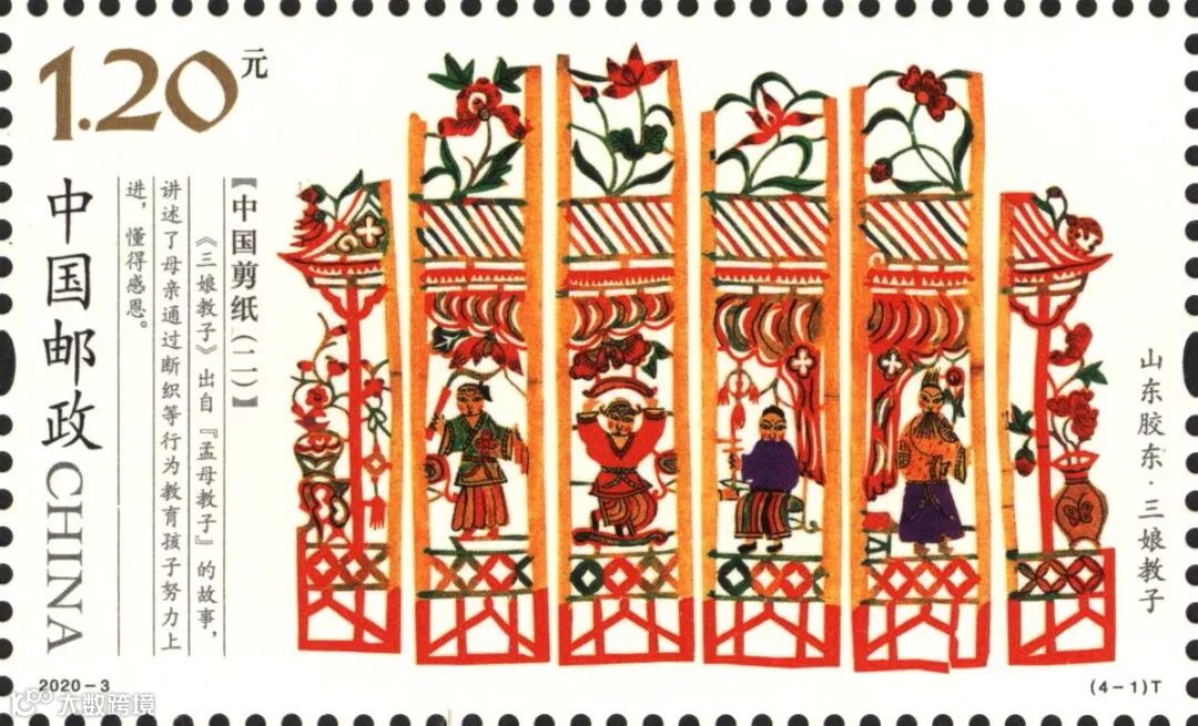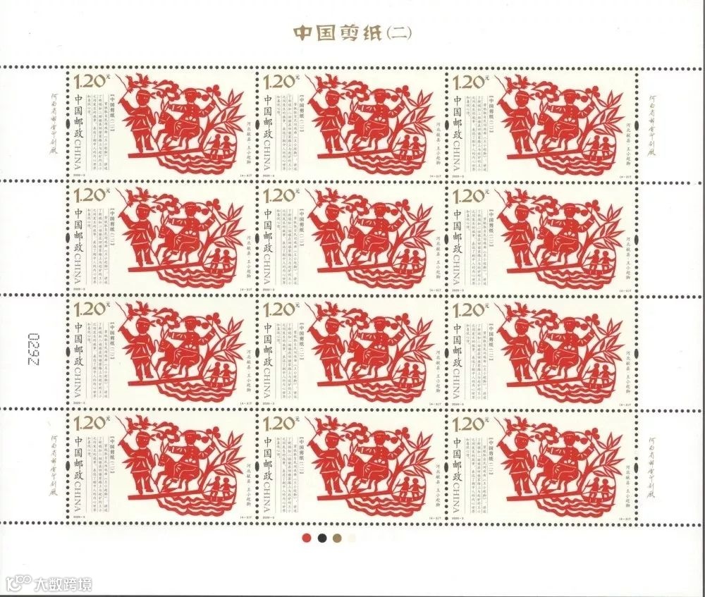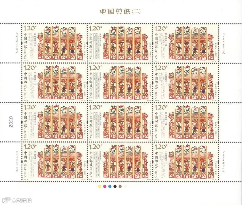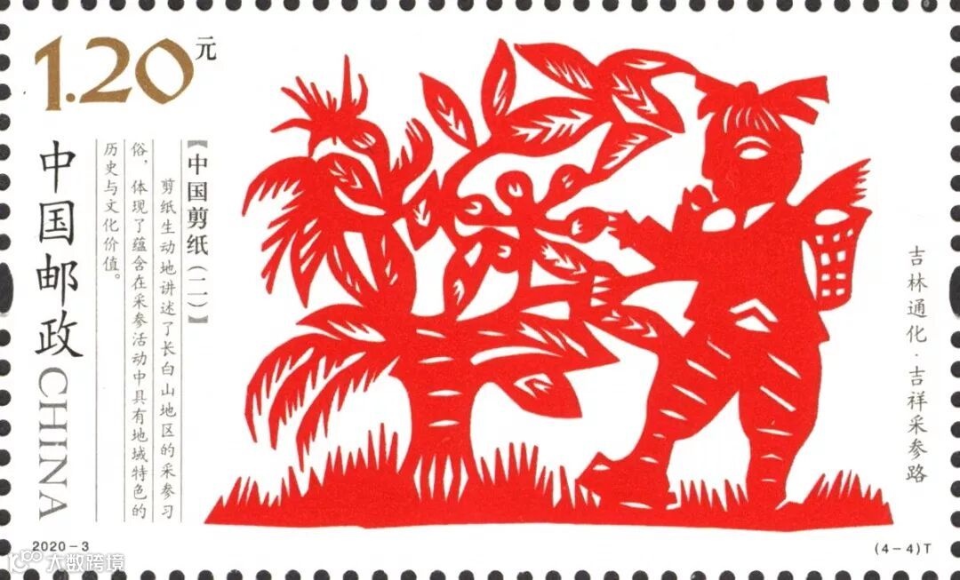 2020-3《中国剪纸(二)》特种邮票一套4枚,系“中国剪纸”系列邮票的第二组,表现了我国北方四种代表性剪纸。该套邮票由王虎鸣设计,河南省邮电印刷厂采用局部全息烫印工艺胶版印刷。
