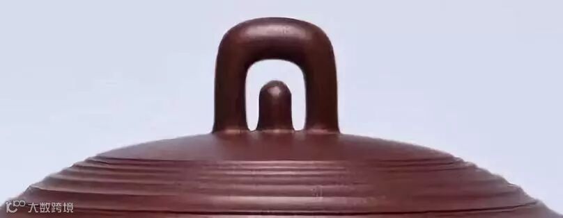 壶盖上有朱红色的七圈凹槽,从顶视图看像树干截面的年轮,以此象征“70周年”,从侧面看为依次向上延伸的台阶,有前进复兴之意,与壶鈕的“门”相互呼应,亦有“走向开放”“迈入未来”之感。