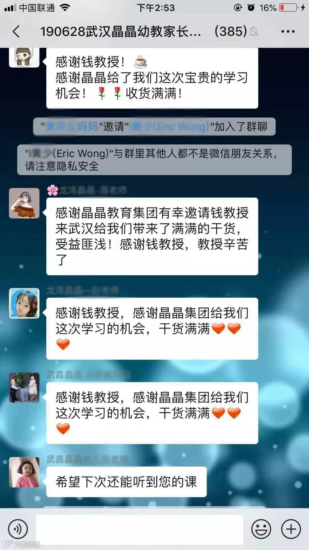 当天田汉剧院座无虚席,钱教授从幼儿发展规律,结合生理学、心理学、教育学知识,从教育理念、规律、方式方法和实践案例等多方面深度解剖,娓娓道来。现场家长与教授亲切互动,反响热烈。与会家长纷纷表示:原来幼儿是要这样教育的,原来有这么多的规律和方法,原来以前的很多观念方法都是错误的,对教育孩子有了重新的认识。对晶晶教育集团能给家长们组织如此好的活动表示由衷的感谢。
