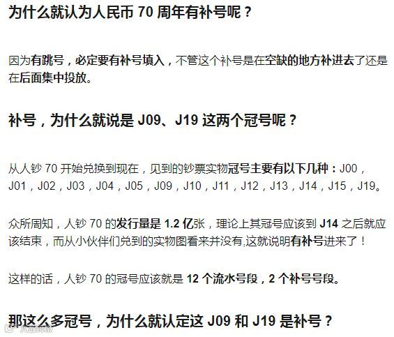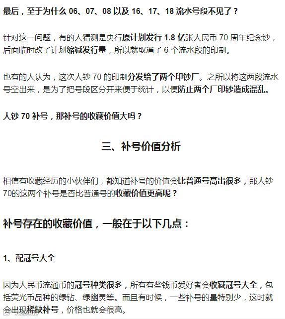 二、70 纪念钞是否有补号?