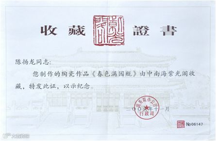 2004年 《牡丹纹缸》《春色满园瓶》被淄博市陶瓷博物馆收藏。