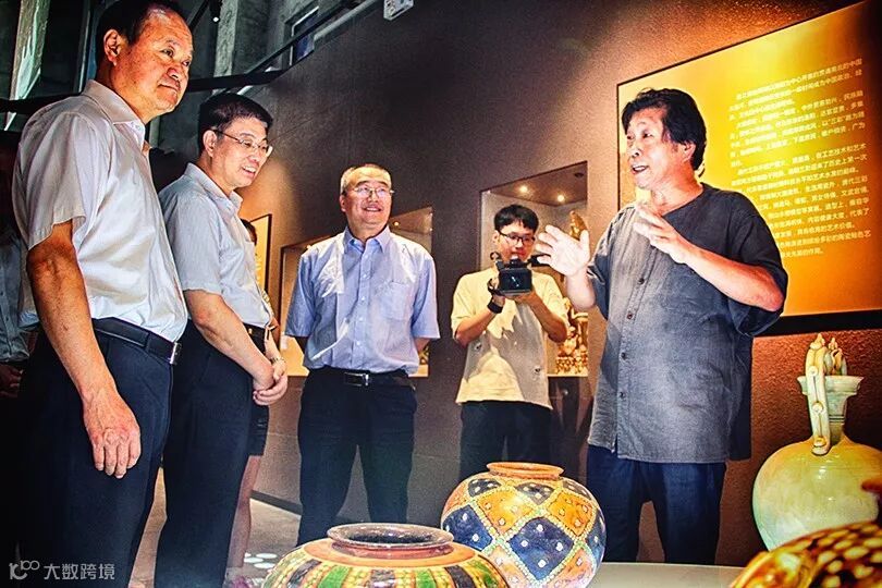 在三彩创客区,戴均良部长一行了解了三彩产业发展,并祝愿郭爱和馆长培养出更多优秀三彩创新创意人才。