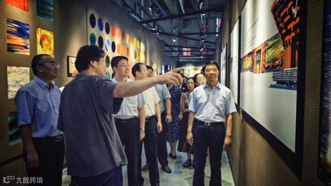 调研组一行观看洛阳市规划展示馆大型环艺壁画《洛阳》宣传片,详细了解壁画所包含的“五都荟洛”、“五水融洛”、“五业兴洛”、“五路通洛”等历史文化元素。