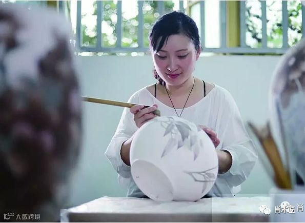 醴陵窑独有的“薄施淡染”技艺体现它的润美。