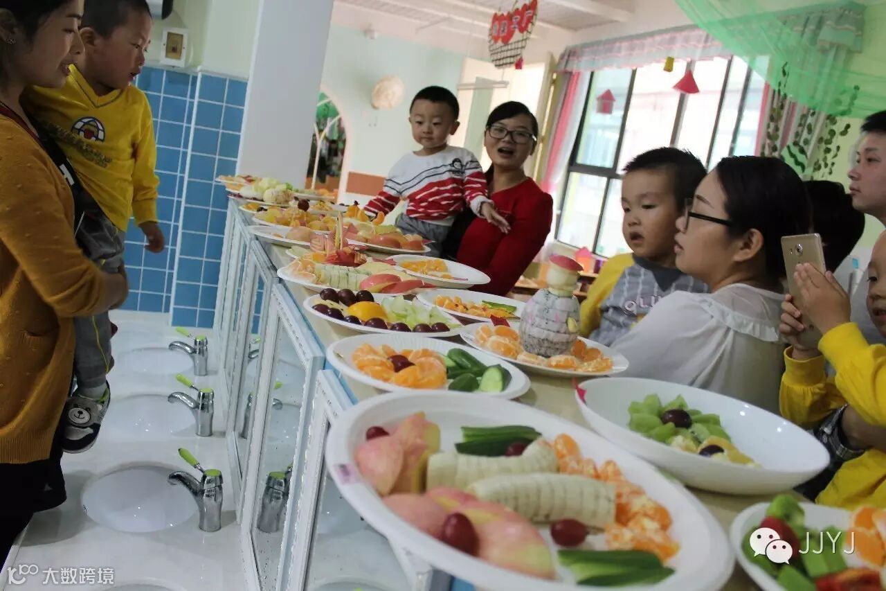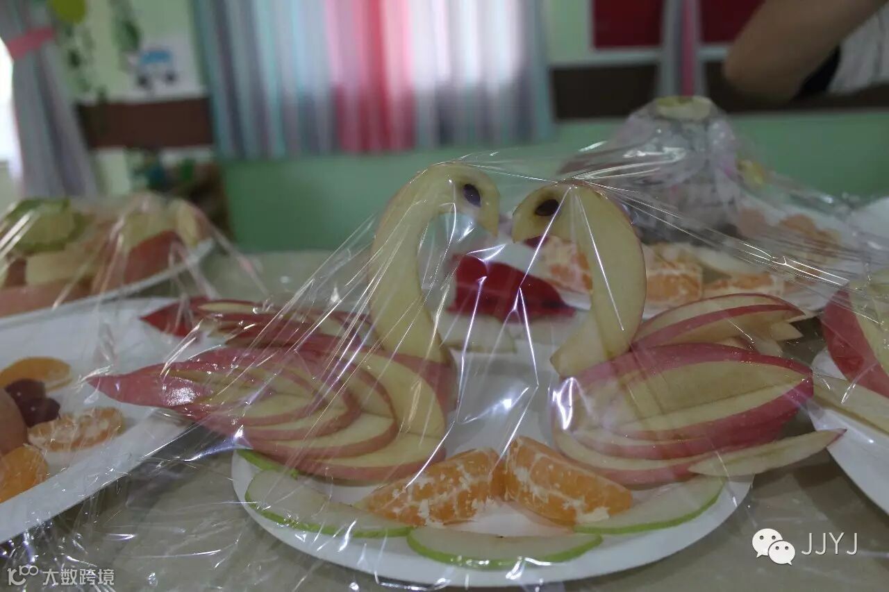 水果拼盘,幼儿了解了常见水果的营养价值,并和家长们一起利用水果进行创想拼盘活动。